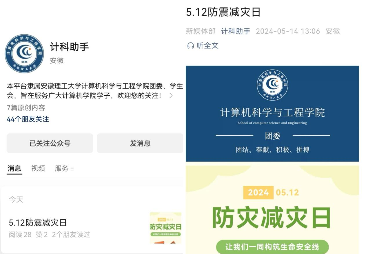 5月12日至14日,学院通过微信公众号、易班平台推送防灾减灾文章,图文并茂讲解遭遇地震、火灾、暴雨、台风、溺水等危险事件时应当采取的自救措施。此外,学院以寝室为单位组织观看线上“5.12防灾减灾”宣传片,使防灾减灾知识更加深入人心。