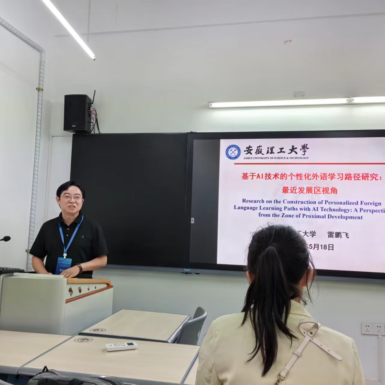 我校外国语学院雷鹏飞教授应邀主持“社会文化理论视角下外语教育学研究:课堂外语学习与教师发展”的特邀主题论坛,来自长安大学、中南民族大学、江苏大学和武汉科技大学的多位学者在特邀论坛中分享了其最新的高水平学术成果。雷鹏飞还作了“基于AI技术的个性化外语学习路径研究:最近发展区视角”的学术讲座,引起与会专家和同仁的广泛关注。
