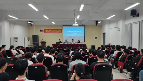 高龙详细介绍了公司的发展历程、业务板块、现阶段的人才需求等情况,并通过大量数据对本届卓越工程师班的教与学过程进行了统计分析,进一步证明开设卓越工程师班的必要性。高龙对安徽理工大学人才培养模式以及办学水平给予充分肯定,并期待同学们未来能够加入英威腾大家庭。