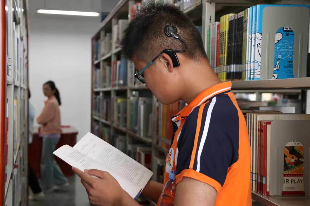 在学校图书馆,孩子们充分感受到了大学浓厚的学习氛围。不管是一楼开阔明亮的大厅,还是二楼先进便捷的机房,亦或是三楼令人目不暇接的藏书,都成为了孩子们眼睛里一道道亮丽的风景线。同行的一名聋哑小女孩兴奋地用手比划道:“这里的学习环境和氛围好棒!我好羡慕大哥哥大姐姐们!”随行老师用手语鼓励她:“你好好读书,以后也有机会在这样的图书馆学习。”馆长及工作人员向孩子们演示了学校借还一体化线上操作、藏书室查询等一系列数字化系统。在阅览室,孩子们和大学生们一起阅读,共同沉浸在浓浓的学习氛围中,在内心深处植下爱读书的种子。