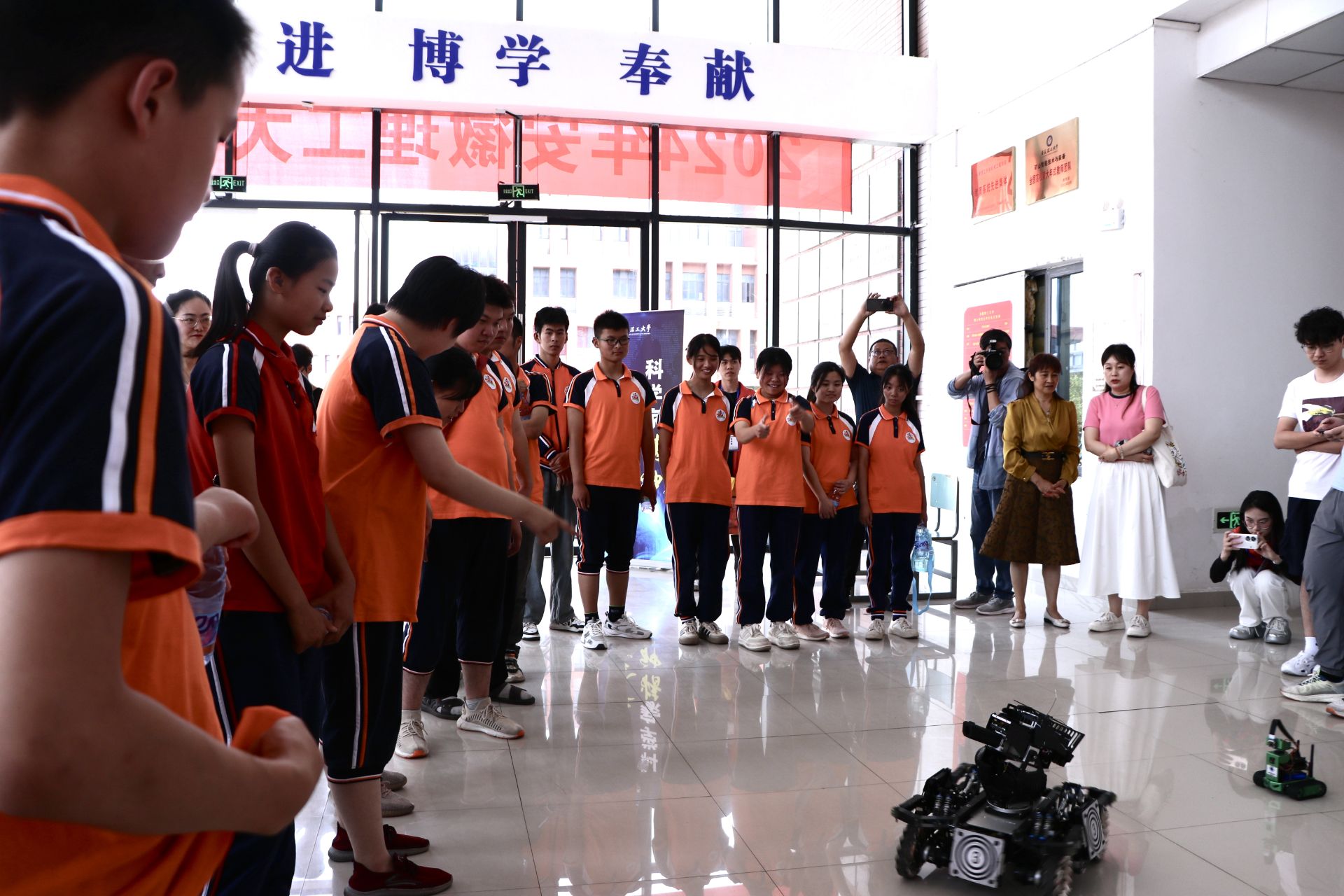 在机电工程学院科技作品展览区,当看到一个个探测车、仿生机器人、机械臂等,孩子们掩盖不住心底的好奇和欣喜。志愿者代表首先带领孩子们参观各种机械设备,并用通俗易懂的语言辅助手势详细为他们讲解作品的名称及用途,蕴含其中的机械原理,耐心解答他们充满想象力的问题。随后,志愿者带着孩子们一起操作演示,让他们在动手实践中感受操控、体验智造。