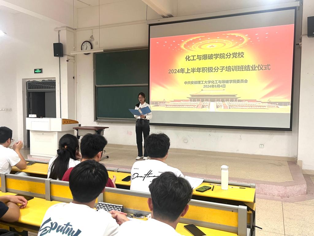 6月4日晚,化工与爆破学院分党校在明理102举行2024年上半年入党积极分子培训班结业仪式。分党校校长、学院党委书记徐泽绵,培训班班主任和190余名参训学员参加了结业仪式。