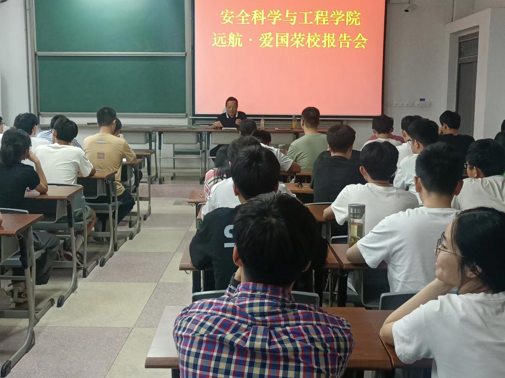 6月5日下午,应安全科学与工程学院邀请,校关工委委员欧阳连勤在天工北107教室举行远航·爱国荣校报告会。学院党委书记金德,学院学生工作负责人,毕业班辅导员和毕业班学生代表聆听报告会。