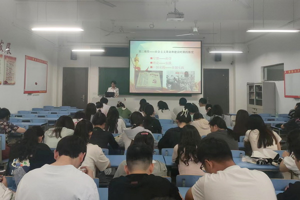 入党宣誓暨重温入党誓词大会后,院党委书记张可佳为毕业生党员上党课。她围绕新时代内涵、理论来源、实践基础和体系结构这四个方面进行了系统阐释和深入解读。她要求,同学们要继续加强理论学习,坚定理想信念,勇做时代先锋,为党旗增辉。