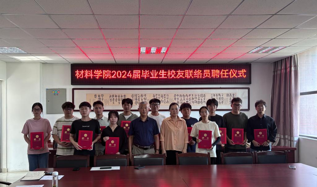 6月12日,材料学院2024届校友联络员聘任仪式在崇义楼B306举行。院长闵凡飞、院党委副书记陈向君、毕业班辅导员、2024届校友联络员和毕业生代表参加了仪式。
