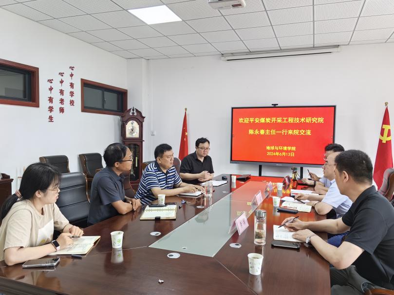 6月13日,煤矿生态环境保护国家工程实验室执行主任陈永春一行4人来地球与环境学院调研交流国家工程研究中心优化整合相关工作,学院院长刘启蒙、副院长张世文参加了交流会。