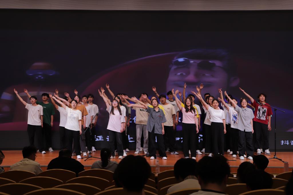 在花开盛世篇章,歌曲《我和我的祖国》以青春之名,书写清澈挚爱,以心中红星,献礼盛世中华;歌曲《我相信》或悠扬婉转,或雄壮奔放,歌声嘹亮尽展青春风采。《夜空中最亮的星》《相信我们会创造奇迹》《你从未离去》《我乘着风飞过来》《明天会更好》……一首首耳熟能详的合唱曲目响彻现场,各参赛队以其饱满昂扬的姿态、基础扎实的唱功、绚丽多彩的表演给观众带来了一场视听盛宴,赢得师生阵阵喝彩。