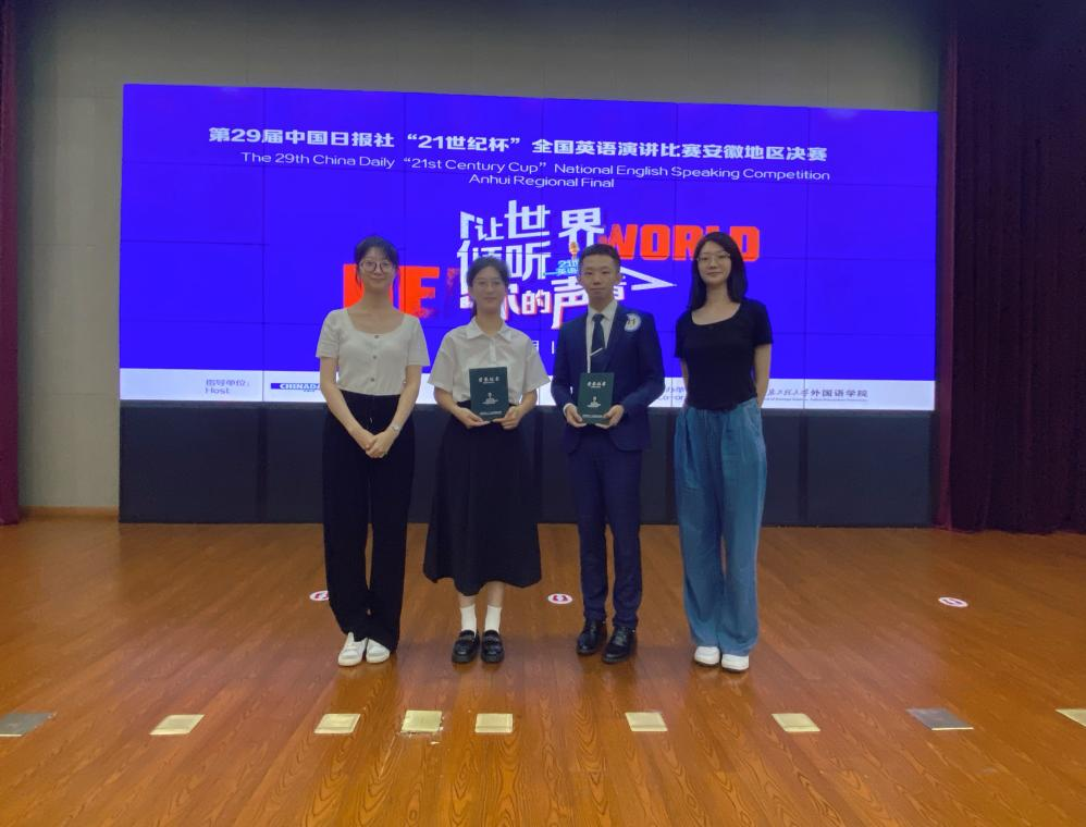 6月22日,由中国日报社主办、安徽工程大学承办的第二十九届“21世纪杯”全国英语演讲比赛(安徽赛区决赛)在芜湖成功举办。我校英语专业2021级陈晓萱同学(指导老师:郭雨晨)、网络与新媒体2022级李想同学(指导老师:钱瑞云)在比赛中表现优异,双双斩获一等奖并晋级全国半决赛。我校省赛一等奖获奖人数在省属高校中排名第一。