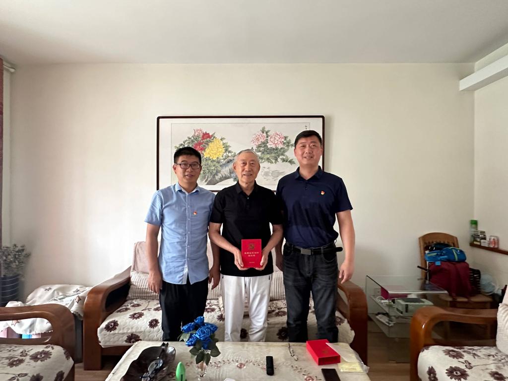 “七一”到来之际,为弘扬党的光荣传统和优良作风,表达对老党员的关爱和祝福,地球与环境学院党委书记陈楠一行走访慰问老党员周立功老师,代表学校颁发“光荣在党50年”纪念章。