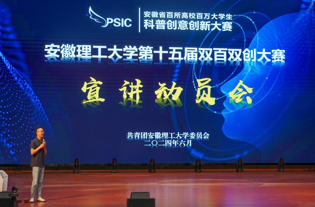 6月28日下午,为进一步提升全校青年学子参与双百双创大赛热情,营造浓厚的创新创业氛围,学校在双创中心报告厅举办第十五届双百双创大赛宣讲动员会。中国科学技术大学科技传播与科技政策系张燕翔副教授、安徽省科普产品工程研究中心事业二部总监叶浩应邀担任主讲嘉宾。全校近1000名学生通过线上与线下相结合的方式聆听了宣讲动员会。