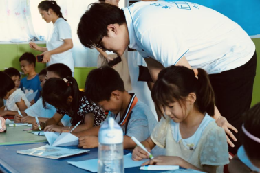 志愿者们充分发挥自己的专业优势和特长,为小学生们精心设计了音乐、美术、天文、心理等课堂教学活动。天文课上,通过志愿者的教学,学生们了解到了宇宙的起源、行星与星系,拓宽航空航天知识储备的同时,增强了他们的民族认同感及科技强国自信心。心理课上,“爱自己是终生浪漫的开始”这一主题,实践队员引导学生手绘自画像,领悟出爱自己是爱别人的前提,如何何时都不能将爱自己建立在伤害别人的基础上。同时,志愿者向小学生们介绍了特殊儿童这一群体,他们纷纷自发地想要写一句鼓励的话送给这群“折翼天使们”。