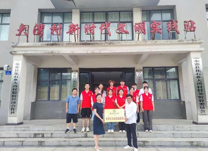 “安徽理工大学大学生社会实践基地”在大湾村新时代文明实践站揭牌成立,学院党委副书记夏晓丹与大湾村村两委干部汪建国为基地揭牌。汪建国向同学们详细介绍了大湾村从金寨县重点贫困村之一,到现如今宜居宜产宜游的“明星”村发生的巨变,希望公卫学院的学子们以此次来大湾村开展社会实践活动为契机,结合双方优势,为大湾村乡村振兴建设注入新动力。