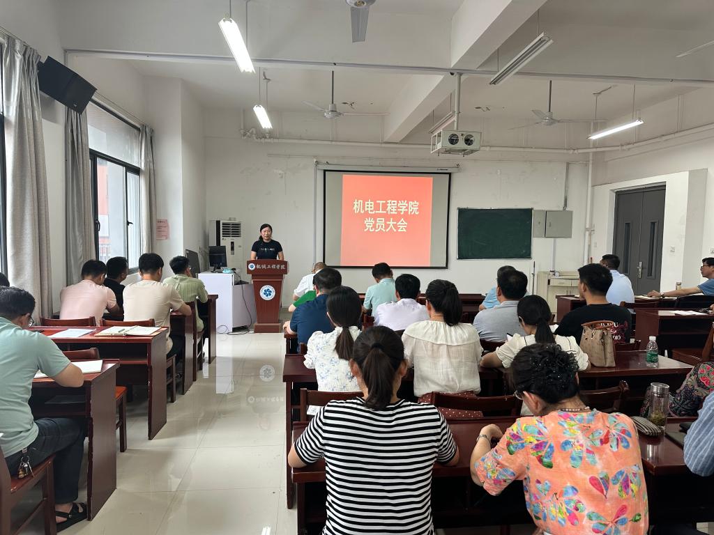 7月9日上午,机电工程学院在学院B403报告厅召开全体教职工党员大会,总结回顾上半年学院党建工作,部署学校第八次党代会代表选举,通报违纪行为典型案例等。