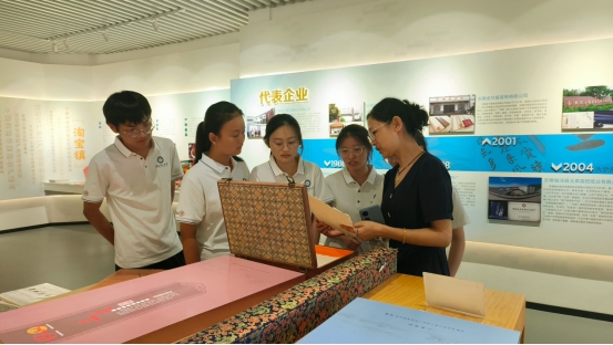 7月10日上午,调研团走进泾县丁家桥镇的宣纸产业园,开启对传统宣纸工艺制作的探索之旅。在园内负责人的引导下,成员们知晓了宣纸产业园的全貌,了解了宣纸1500多年的悠久历史和制作历程,亲手触摸宣纸的原材料——青檀树皮,对宣纸的制作工艺有了直观感知。宣纸制作的六大工艺流程和108道细分工序,其中捞纸、晒纸和剪纸等关键步骤均由手工完成,体现了极高的工艺水平,展现了工艺师傅们追求卓越的工匠精神和中华传统文化的深厚底蕴。
