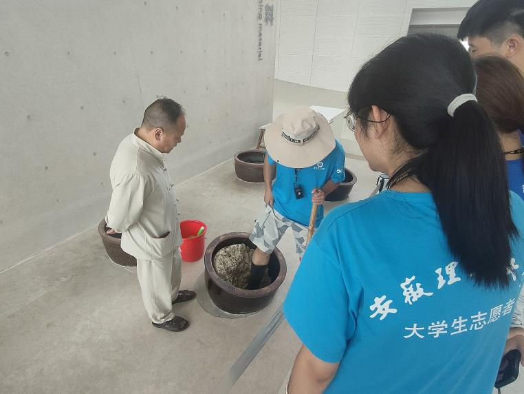 7月6日上午,团队前往中国宣纸文化园,讲解员为团队成员进行了详细的解说,在参观与欣赏中,成员们深入了解了宣纸的构造、发展及其价值。志愿者们了解到宣纸制作流程的复杂与精细——选料、蒸煮、漂白、打浆、捞纸、压榨、晒纸、剪纸,每一位工作者在忍耐着工作坊的高温的同时也没有过一刻松懈。宣纸之所以昂贵,正是因为它来之不易,一面上乘宣纸的产生需要匠人们付出大量的时间和精力。在馆内可欣赏名人墨宝,了解宣纸的悠长历史,亦可以体验宣纸制作工艺,与匠人们携手制作,体会这些大国工匠们的辛劳与智慧。