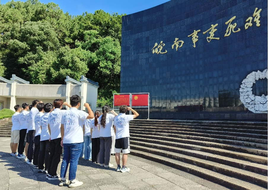 皖南事变烈士陵园位于泾县城郊的水西山,在讲解员的介绍下,实践队员了解到在皖南事变牺牲的烈士中有很多的青年战士,在那个风雨飘摇的时代,他们义无反顾地把生命奉献给了党,奉献给了最伟大的共产主义事业。面对苍然雄浑的石碑和鲜红团旗,实践队员庄严宣誓,重温入团誓词,决心为共产主义事业而奋斗终身。