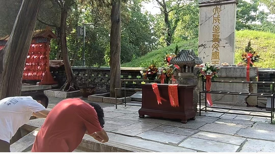 7月6日,团队成员们前往第三站——孔林。进入林园,讲解人员带着团队成员游览了孔林景观,沿途介绍了相关历史和人文故事,团队成员先后祭拜了子贡、子路和孔夫子之墓。深入林中,只见墓冢累累,碑碣林立,还尚存有李东阳、严嵩、康有为等明清书法名家的亲笔题碑,每一块碑刻都镌刻着后人对先贤的敬仰与追思。