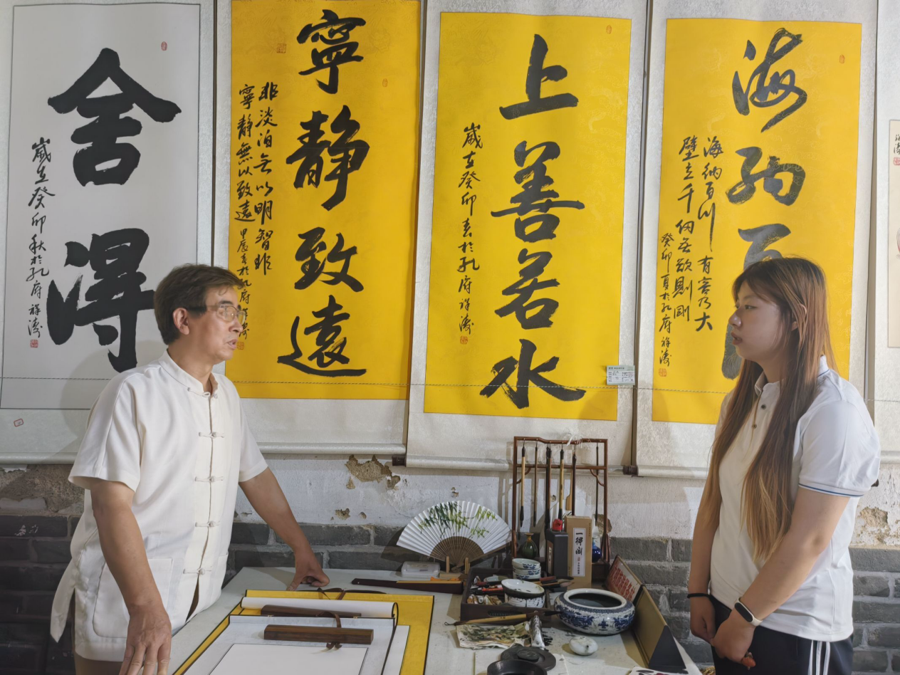 第二站团队来到了孔府,来探寻孔子生前印记,深入体会孔子的儒家思想。在调研的过程中团队不仅学习了重光门、大堂、前上房等建筑的历史,还采访了著名书画家、孔子第七十五代传人孔祥涛先生。孔先生表示,书法作为一种中国传统文化和美学,在世界上是绝无仅有的,每一幅好的书法作品同时兼具传统审美与作者的精气神。