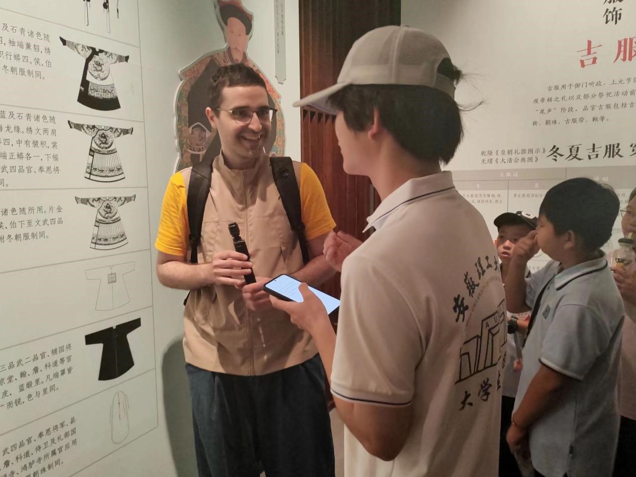 7月7日,团队成员们来到了孔子博物馆,共同探寻儒家文化的深厚底蕴和时代价值。在参观中,团队成员有幸采访到一位热爱中国传统文化的国外自媒体博主,他表示中国文化的丰富和博大精深令他非常震撼,他希望通过自媒体的方式传播中华文化,让更多人了解并热爱中国传统文化。通过与国外友人深入的交流,团队成员深深意识到向世界传播中国优秀传统文化,不仅是对中华璀璨文化的传承与弘扬,更是对全球范围内文化交流与互鉴进程的积极促进。作为青年学子,更要担当时代责任彰显青春本色。