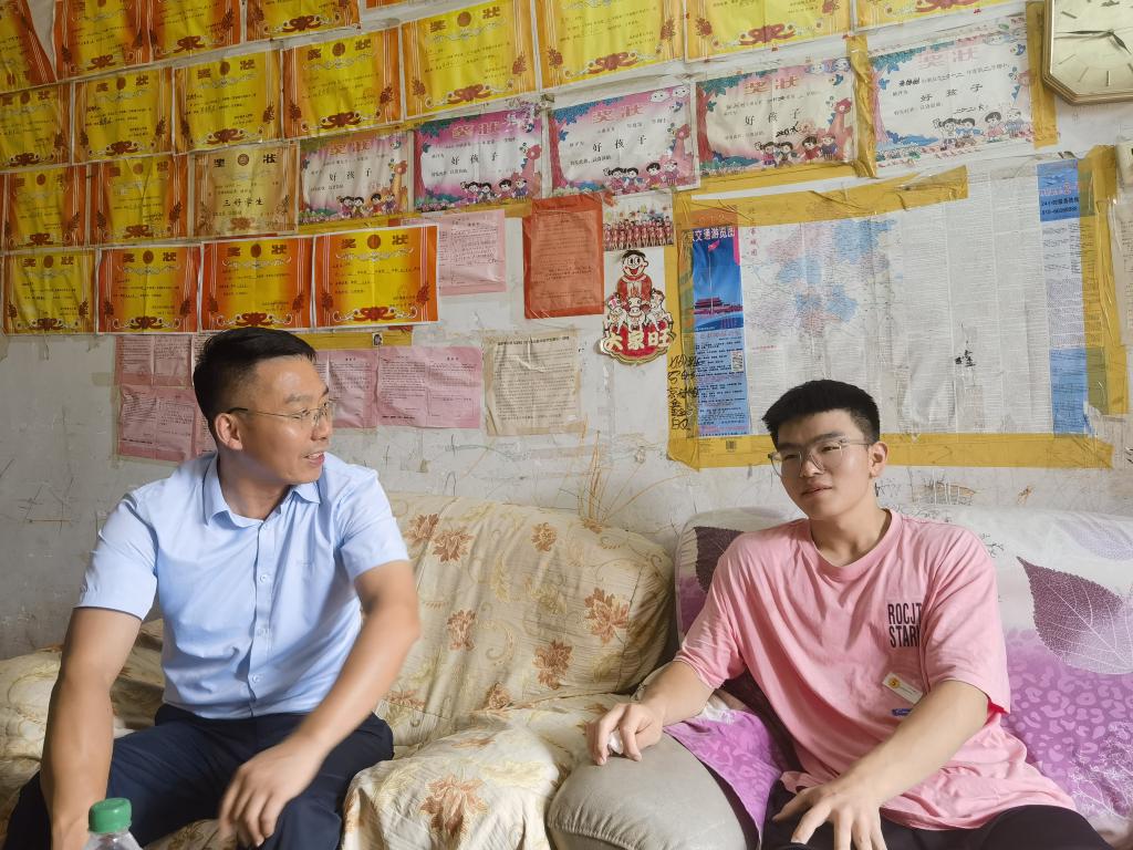 家访老师勉励学生不畏暂时的经济困难,珍惜求学的宝贵时光,奋发拼搏,勇敢逐梦;同时,就学生与家长共同关心的考研、就业、征兵政策等相关问题进行了耐心细致解答。