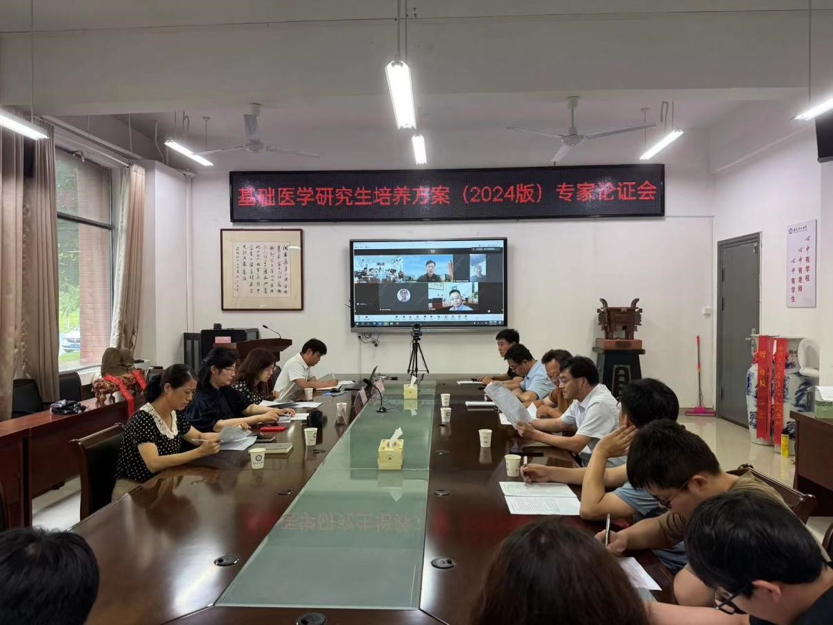 7月18日,医学院在崇仁楼C114会议室通过线上线下方式召开基础医学研究生培养方案(2024版)修订专家论证会。国务院学位委员会基础医学学科评议组成员、天府锦城实验室主任黄灿华教授,教育部基础医学教学指导委员会委员、上海同济大学医学院院长郑加麟教授,学校精准医学创新研究院院长王文新教授,医学院吴静教授,学校一附院张梅主任医师等五位专家参加了论证会,黄灿华担任论证组组长。会议第一阶段由医学院院长胡东主持,会议第二阶段由黄灿华主持。