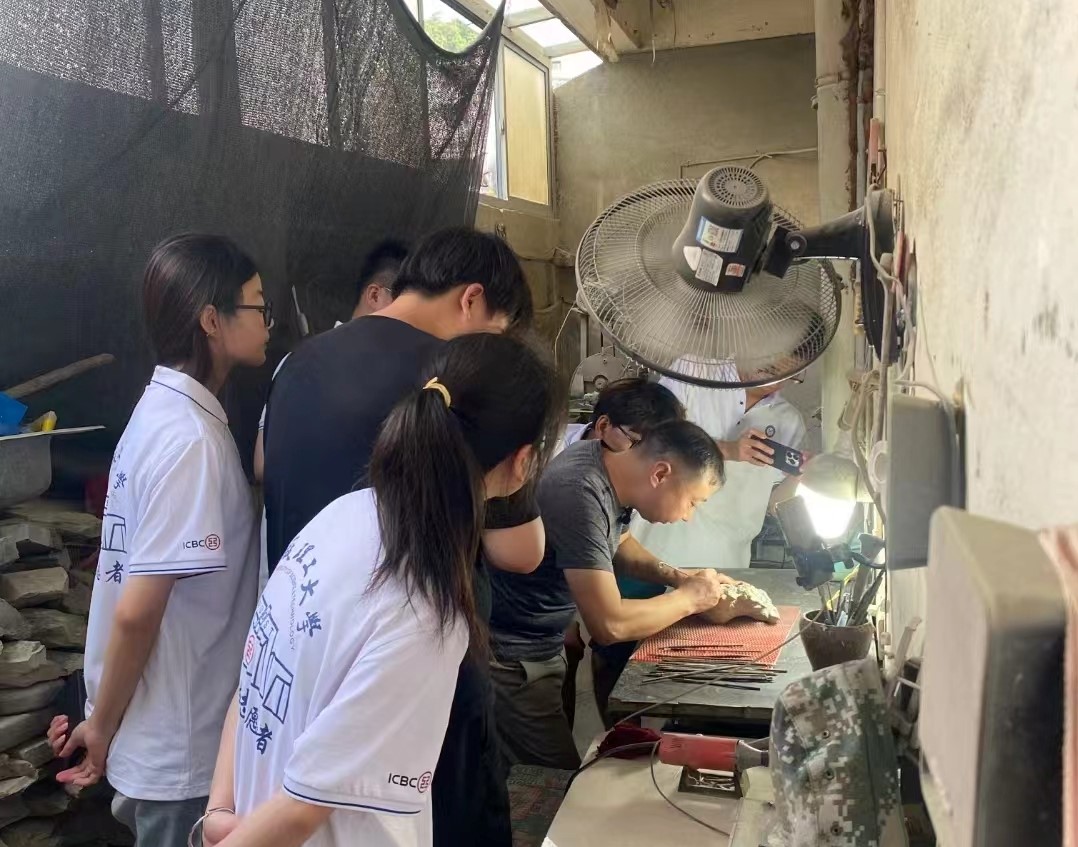 实践团队探访了歙砚制作技艺,观看了制作歙砚的部分过程并与传承人方荣老师进行对话。方荣老师说:“歙砚的创新发展,需要结合徽州传统文化,需要大力培养后备人才资源、人才队伍,加强校企合作,让更多的非遗传承人走入校园,向学生传授歙砚的知识、歙砚的技艺,培养他们对歙砚文化的兴趣,继而也充实到我们传承的队伍中来。”团队成员从对话中了解歙砚的艺术价值和文化内涵,更从话语间明确青年一代对非遗传承的重要责任。