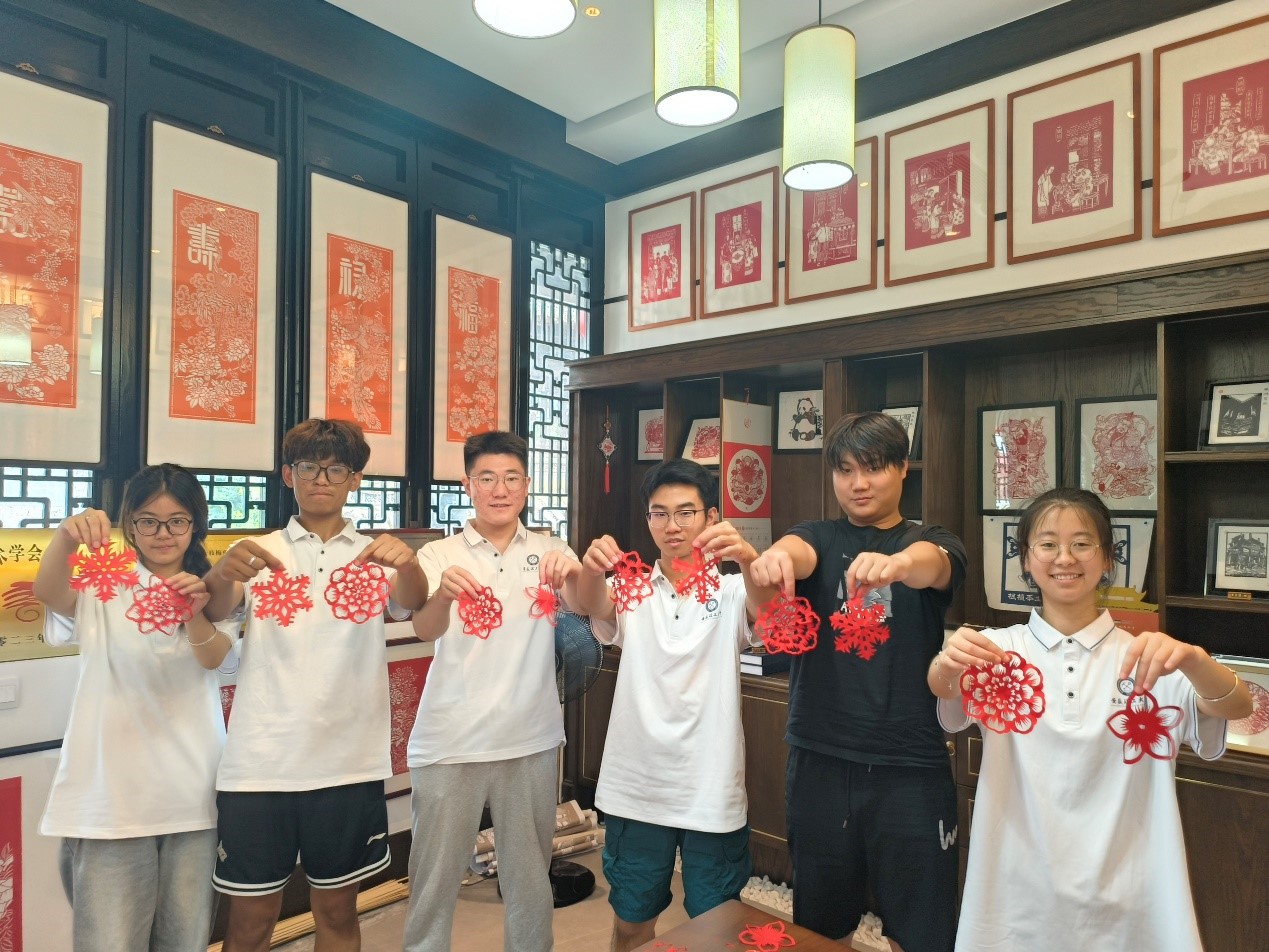 徽州剪纸是徽州传统民间艺术中一个富有生命力的分支,它与徽文化的形成以及徽州手工技艺的发展有着一脉相承之处,在徽州民间俗称为“铰花铲图”、“剪嫚嫚纸”。实践队员有幸对话到省级非物质文化遗产——徽州剪纸代表性传承人吴笑梅老师,共同感受“刀光剪影”里“指尖艺术”的魅力。在吴笑梅老师的指导下,成员们纷纷参与剪纸,亲身体验起剪纸艺术的魅力,在亲力亲为中感受“工匠精神”。