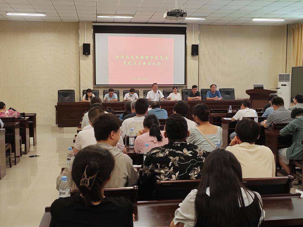 为推进党纪学习教育走深走实,7月24日下午,力学与光电物理学院在明道楼一楼报告厅召开党纪学习教育暨师德师风警示教育大会。学院100余名师生党员参加了会议,会议由学院党委书记孙东升主持。
