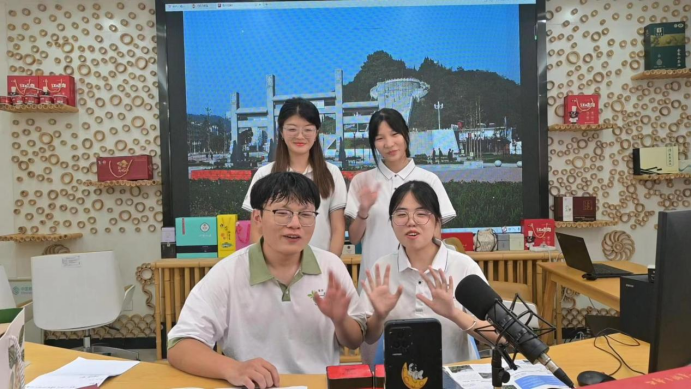 7月19日,筑农益栈实践团首站抵达金寨县文旅电商直播中心,作为安徽省第一家县级文旅电商直播中心,这里不仅是商品交易的场所和农产品展示的窗口,更是新质生产力赋能乡村振兴的前沿阵地。金寨县文旅电商直播中心副主任廖军介绍了金寨电子商务发展现状和电商直播中心的运营情况,并就“电商+基地+农户”“电商+龙头+合作社+农户”“你种我销、你养我卖”等多种电商帮扶模式与团队师生展开了研讨交流。团队成员还在直播间开展直播带货,在镜头前畅聊金寨红色文化故事,推荐金寨特色农产品,亲身体验数字营销助力农产品销售。