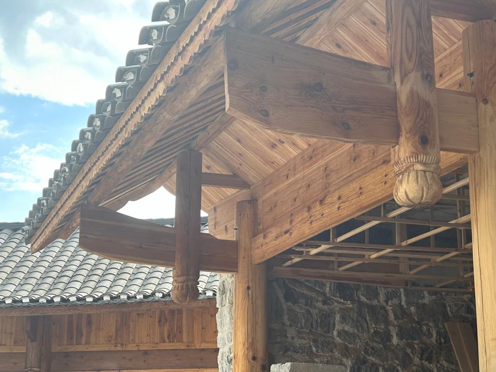7月26日下午,实践团来到酉阳县非物质文化遗产生产性保护示范基地——土家族传统艺术建造博物馆。吊脚楼的木头均采取榫卯结构连接,不规则石头则是按照白虎背上的纹路砌成,吊瓜样式丰富,在设计上兼顾了实用性和舒适性,采用的工艺技术充分体现了土家人的生活智慧。