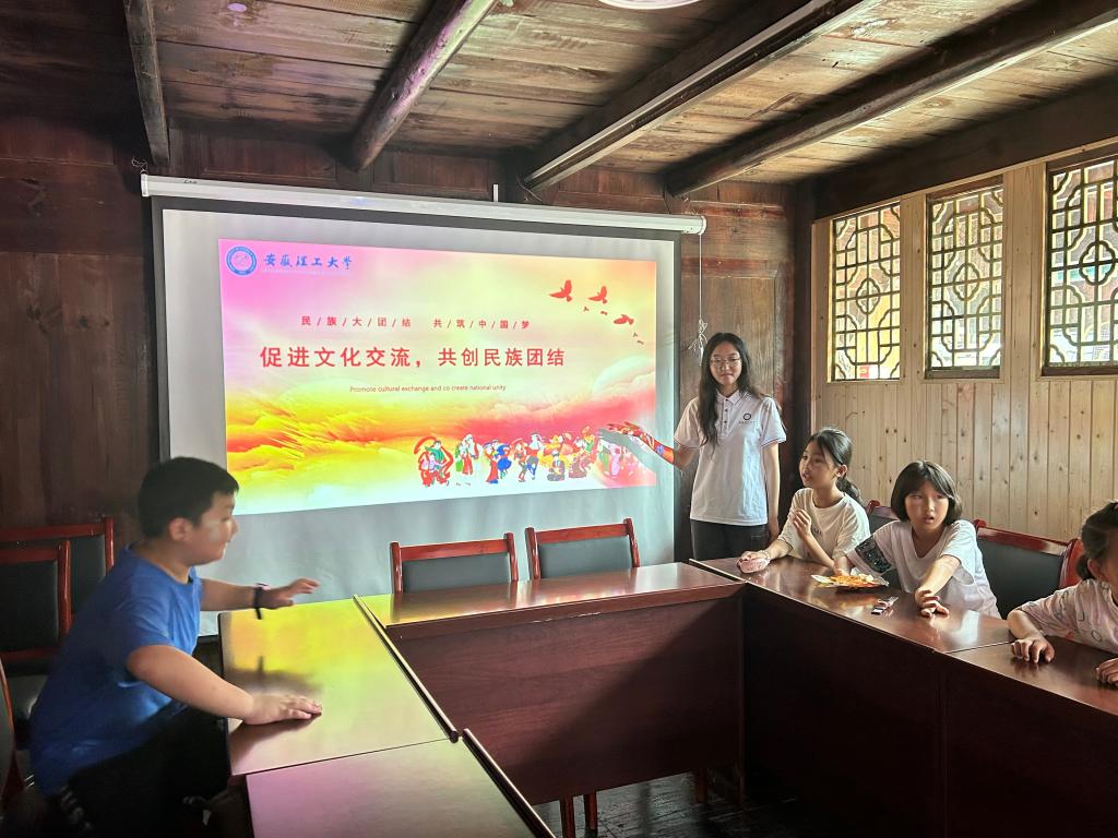 7月27日上午,实践团队向当地居民开展了以“促进文化交流,共创民族团结”为主题的民族文化宣讲会,讲述文化历史,与当地居民进行文化互动,并与当地居民分享了这几天的实践体会和见闻。宣讲会上,团队与当地居民各自讲述了不同民族之间互助的故事,这些故事犹如一颗颗璀璨的明珠,照亮了人们的心灵,也让在场的每一个人深刻感受到了不同民族之间那份深厚的情谊和互助的力量。实践团队带着制作漆扇、花灯的材料和工具,与土家族居民共同凝练制作了反应当地特色的文宣作品,当地居民们纷纷对实践成员表示赞许。