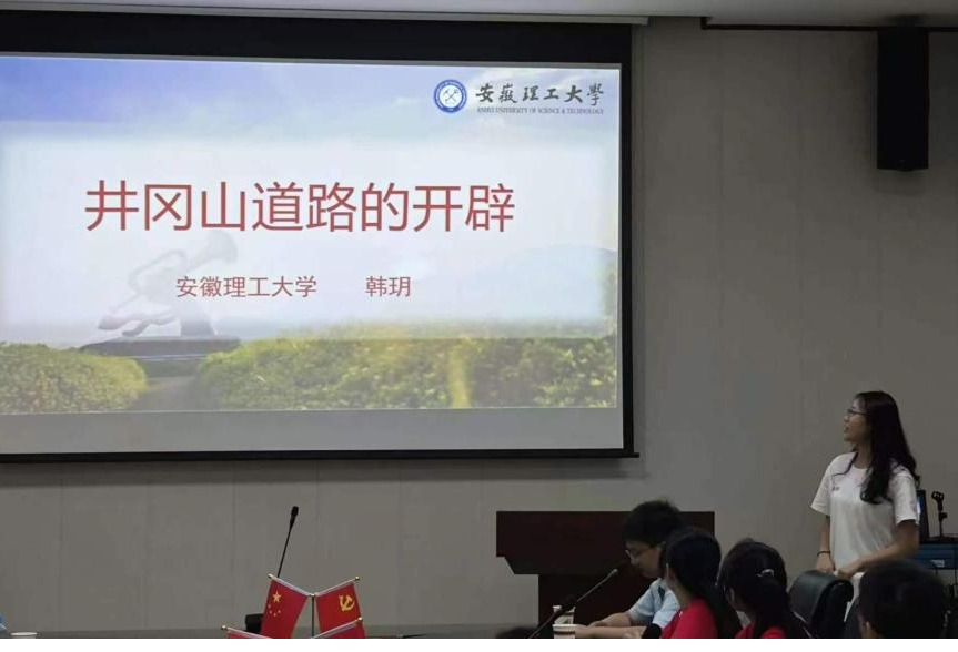 8月5日晚,“火种计划”实践团联合南京大学、宁波大学、广东石油化工学院、安徽师范大学等四所高校的社会实践团队,在全国青少年井冈山革命传统教育基地举办了“行走的思政课”研学成果展示活动。五所高校的学子们围绕“聚焦井冈红 畅想中国梦”的主题,分享了连日来在井冈山研学的心得感悟。我校马克思主义理论专业的研究生韩玥同学以“井冈山道路的开辟”为题进行了思政课教学展示,她分别从“山路之源”“山路之险”“山路之玄”三个方面解答了井冈山道路何以开辟、何以受挫、何以成功。
