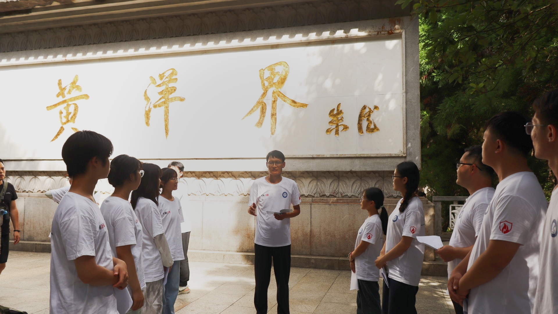 下午,实践团登上了井冈山五大哨口之一的黄洋界。1928年8月,黄洋界保卫战在这里打响,红军以不到一个营的兵力击溃了敌人四个团,粉碎了国民党军队对井冈山的第二次“会剿”。在黄洋界保卫战胜利纪念碑下,代老师带领队员们朗诵了毛泽东的《西江月·井冈山》。他结合诗词内容讲述了黄洋界保卫战发生的背景及经过,并介绍了这场战役的指挥官何挺颖的生平,勉励新世纪的05后们以何挺颖这位20世纪的05后为榜样,“为有牺牲多壮志,敢教日月换新天”。