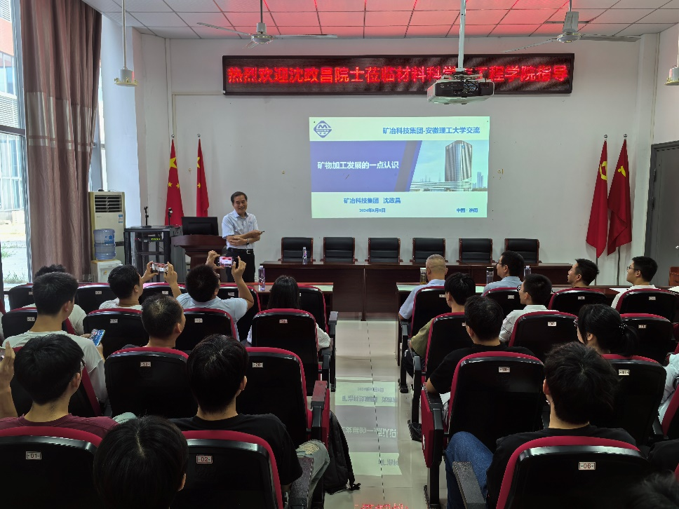 8月8日下午,矿冶科技集团有限公司首席科学家沈政昌院士应邀为材料科学与工程学院师生作报告,报告会由学院院长闵凡飞主持。