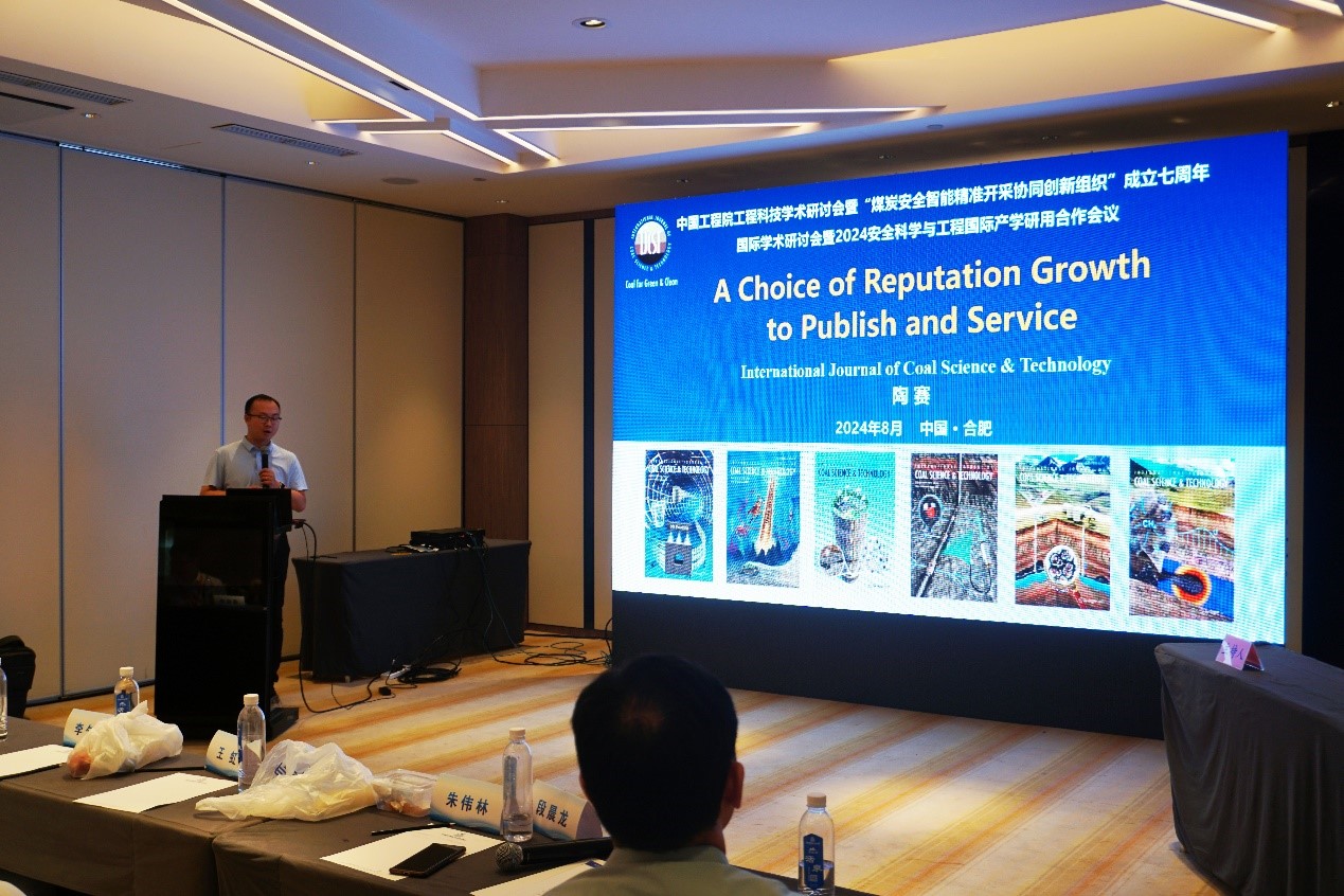 李桂臣作了《煤矿巷道顶板灾害发生机理与快速救援方法研究》的报告,阐述了煤矿开采过程中巷道顶板变形破坏机理,并提出了相应的快速救援方法;韩海生的《煤系高岭土的分离提纯及高值利用探索》介绍了煤系资源分离提纯关键技术与高价值利用的前景;陶明的《露天矿山爆破效果智能化快速评估与参数优化》提出了一种露天煤矿爆破效果的快速评估方法,并进行了参数优化;张磊的《液氮致裂煤体增透机理研究》深入分析了煤岩体压裂增透过程中裂隙扩张机制;邢耀文的《细粒煤(矿物)浮选胶体化学过程强化理论与实践》揭示了煤体洗选过程中浮选胶体的化学反应过程,并介绍了相应的工程实践;闫浩的《坚硬顶板切槽定向诱导SC-CO2压裂裂缝扩展试验研究》深入分析了SC-CO2压裂坚硬顶板过程中裂缝的定向扩展机理;胡成军的《煤矿掘进工作面智能化关键技术研究与实践》介绍了煤矿智能化掘进过程中的关键技术与工程实践;陶赛介绍了《国际煤炭科学技术学报》基本情况与投稿流程。