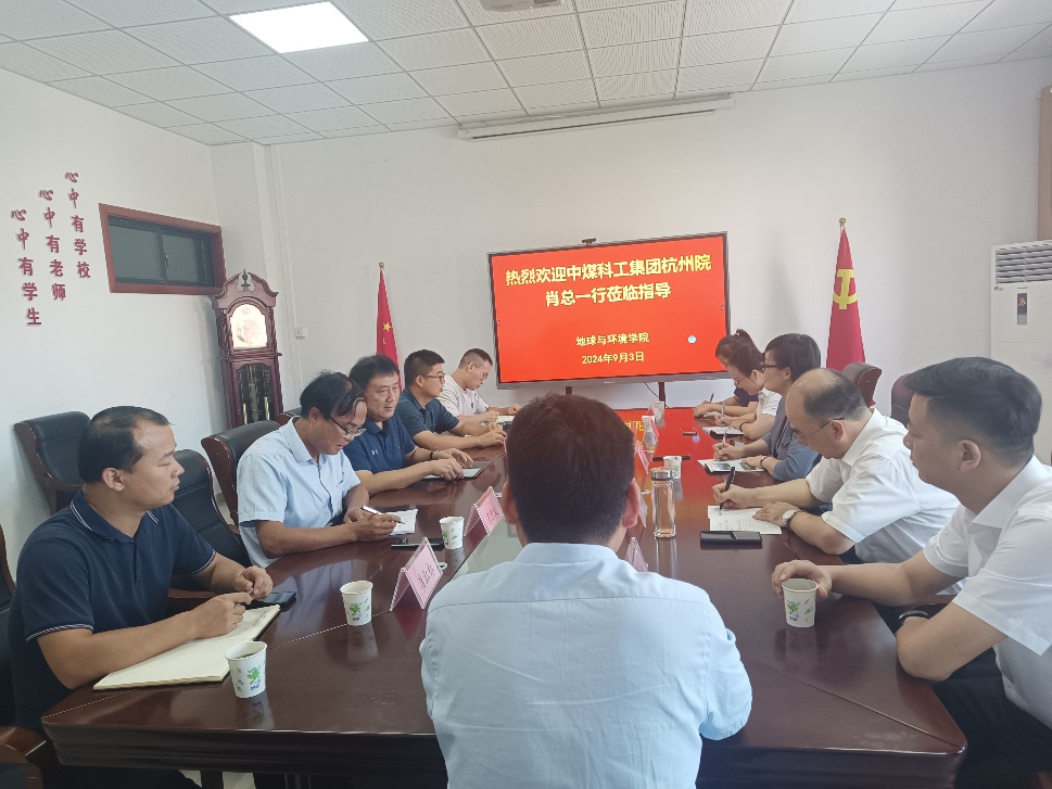 肖艳对学校和学院取得的成绩表示赞赏,同时也介绍了杭州院的发展历程,以及近年来在科技创新、服务行业和地方等方面取得的成绩,表示愿与学院开展全方位的深入合作,同时加强挂靠在杭州院的中国煤炭学会环境保护专委会与矿井地质专委会的合作交流。