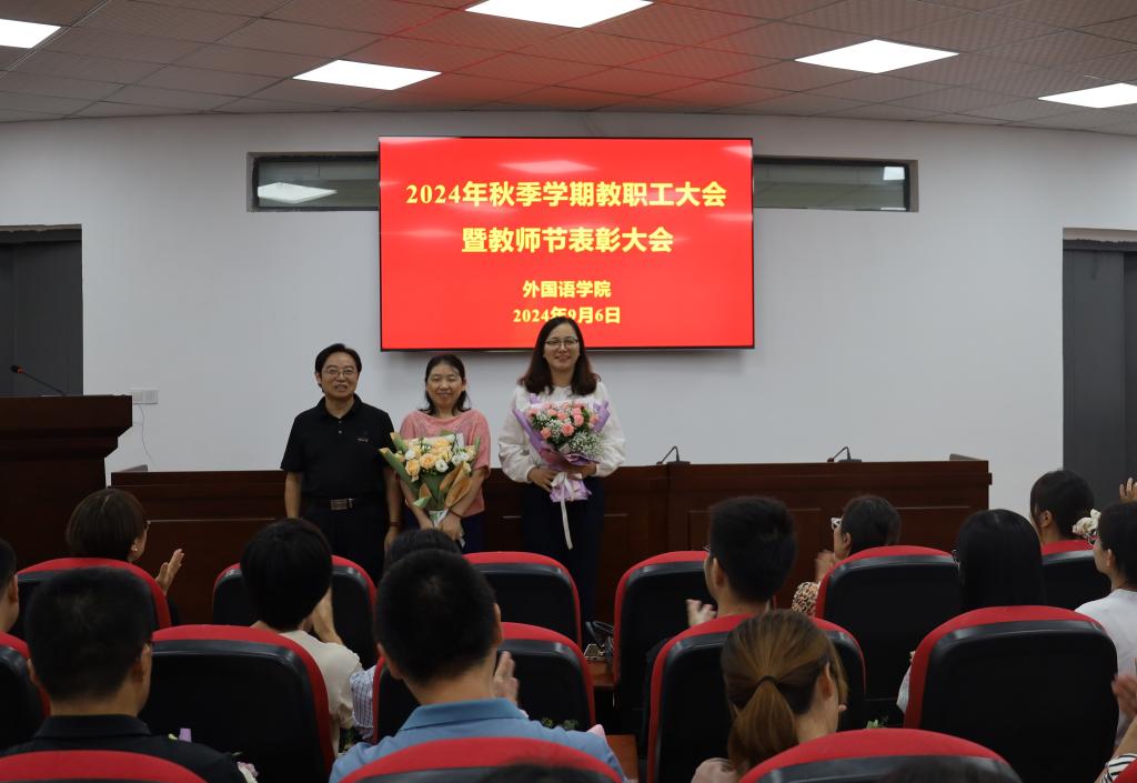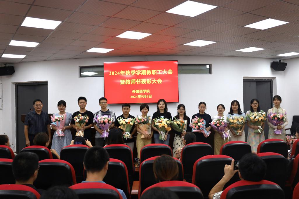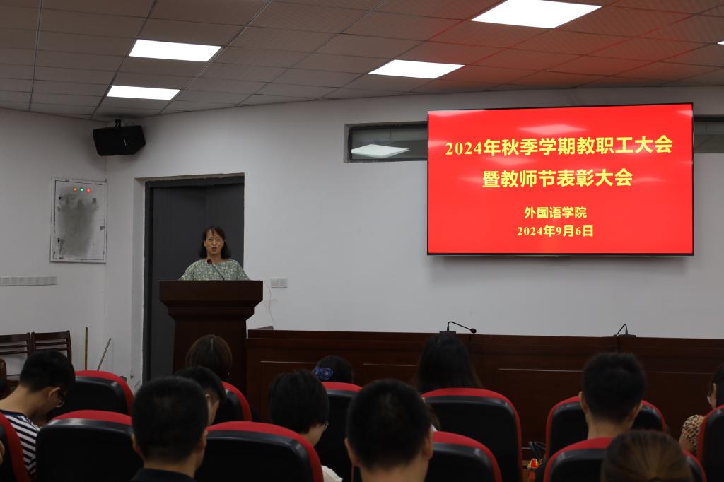 金秋九月,丹桂飘香。9月6日下午,在第40个教师节来临之际,外国语学院在崇智楼A229学术报告厅召开2024年秋季学期教职工大会暨教师节表彰大会。会议由学院党委主要负责人主持。