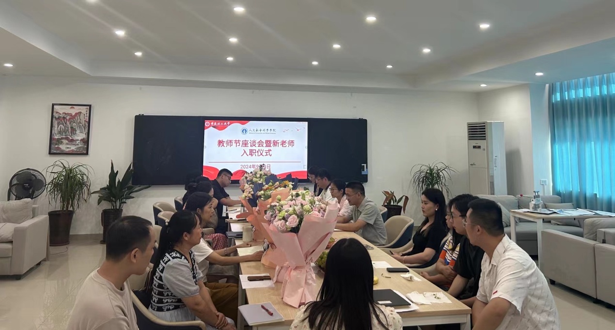 在第40个教师节来临之际,为进一步弘扬人民教师的高尚师德,营造尊师重教的良好氛围,9月9日下午,人文学院组织召开教师节座谈会暨新教师入职仪式。