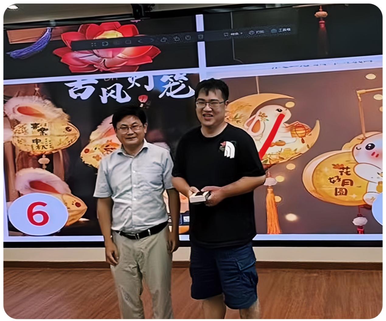 最后,“趣味灯谜”为活动画上了圆满的句号。在轻松愉快的氛围中,大家脑洞大开,踊跃抢答。灯谜游戏让大家体验到了中华文化的深厚底蕴,同时也让大家享受到了智慧的挑战和乐趣。为了增加活动的趣味性,猜灯谜环节还设置了一、二、三等奖并准备了精美实用的小礼品,其中朱涛老师荣获一等奖,何成刚和吕草老师荣获二等奖,王家鑫、李欣和张伟老师荣获三等奖。
