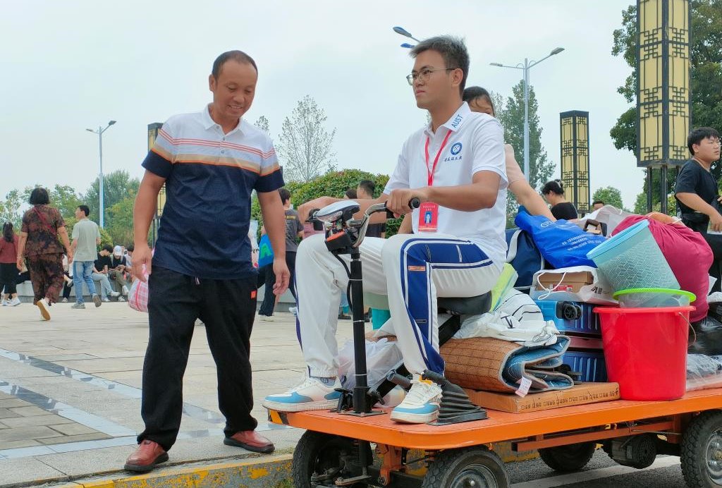 迎新现场,16名迎新先锋队成员身着统一服装,佩戴党徽,严格按照工作要求,以饱满的热情、周到的服务,为新生指引道路、搬运行李、答疑解惑,引导新生完成报到登记、入住,帮助新生尽快熟悉校园环境,融入校园生活,顺利开启精彩的大学旅程。同时在迎新现场对新生进行反诈普法和警示教育,严防非法出售手机卡、银行卡等违规活动,提高新生防范电信网络诈骗的意识与能力,全面筑牢校园反诈“防火墙”。
