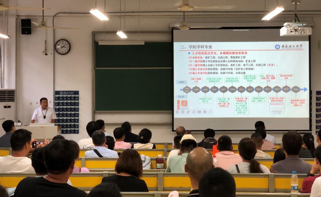 秋风为序启征程,奋楫前行谱新章。为有效落实立德树人根本任务,搭建家校沟通桥梁,凝聚育人合力,9月12日下午,矿业工程学院在天工北110教室召开2024级新生家长见面会。学院领导班子、系室主任、2024级本科生新生辅导员和200余名新生家长参加会议。会议由学院党委副书记田秋实主持。