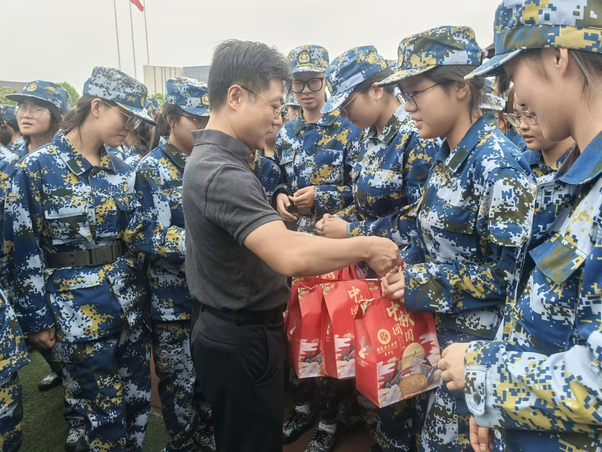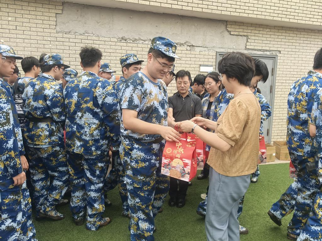 随后,院领导们亲自将一份份精心准备的中秋礼包送到每位新生手中,接过慰问品的新生们脸上洋溢着幸福的笑容,现场气氛和谐温暖。