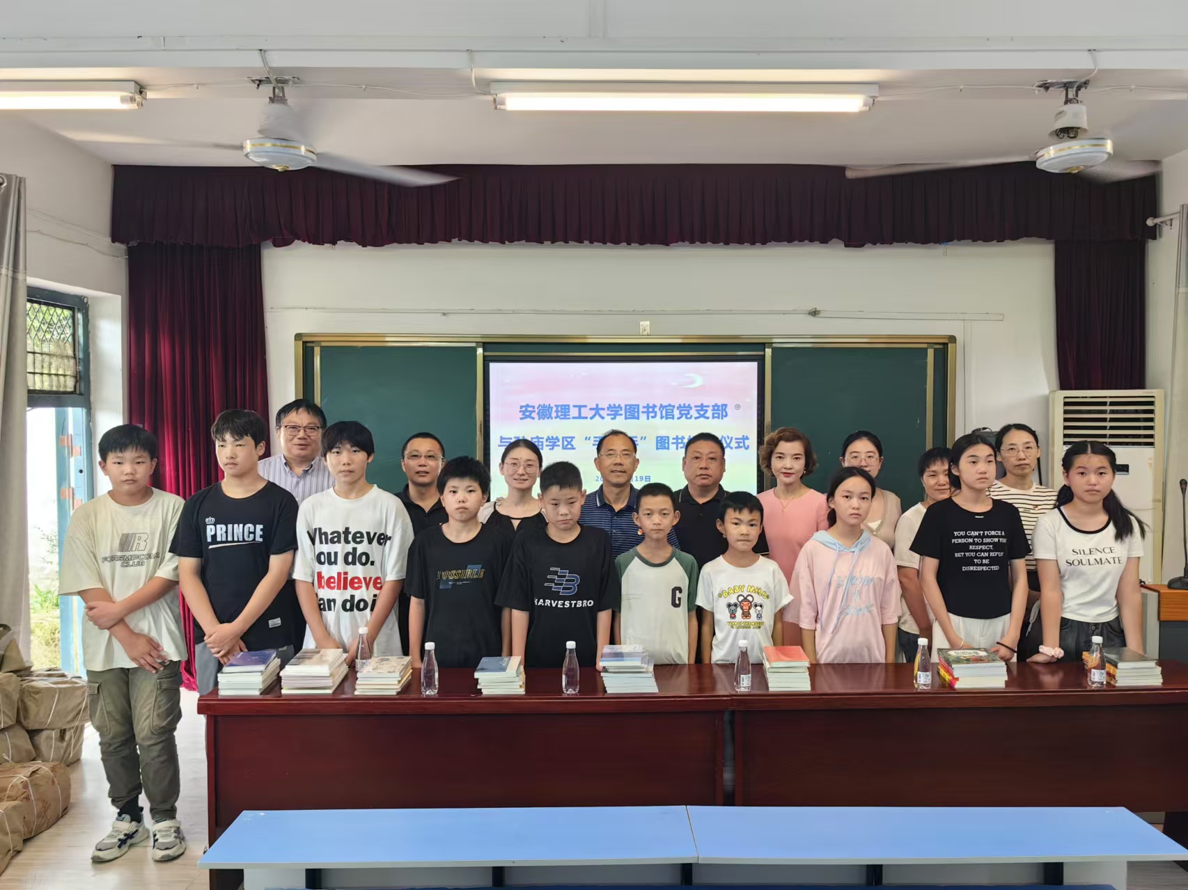 9月19日下午,学校图书馆党支部一行来到谢家集区孙庙学区,举办 “手拉手”图书捐赠仪式。
