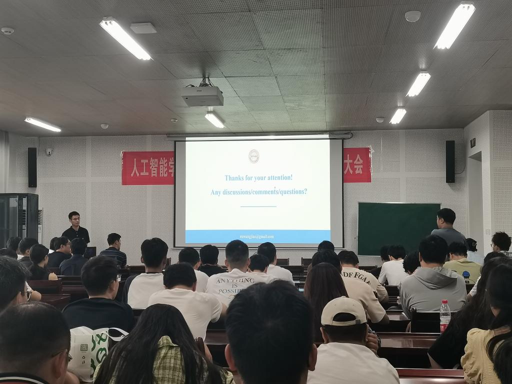 9月20日上午,苏州大学青年特聘教授焦儒旺与维也纳工业大学夏海研究员应邀参加安徽理工大学人工智能学术论坛。人工智能学院执行院长李长河,以及学院近100名师生参加此次论坛。论坛由人工智能学院韩守飞副教授主持。