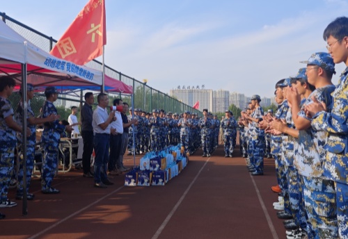 在慰问过程中,学院领导还向新生们赠送了精心准备的慰问品,并叮嘱大家在严格训练的同时,要密切关注自身身体状况,如有任何不适要及时向学院和教官汇报。
