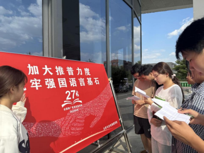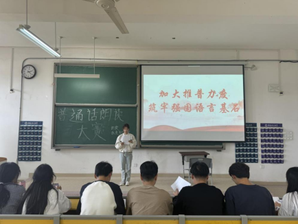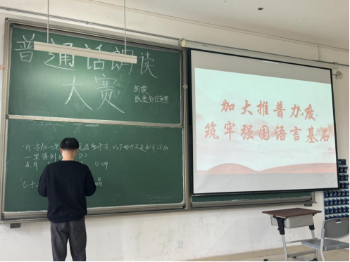 为营造良好的推普环境,学院师生利用主题班会、公众号、展板等多种渠道,广泛宣传国家语言文字法律法规,努力营造和形成人人讲普通话、个个写规范字的良好氛围和行动自觉。