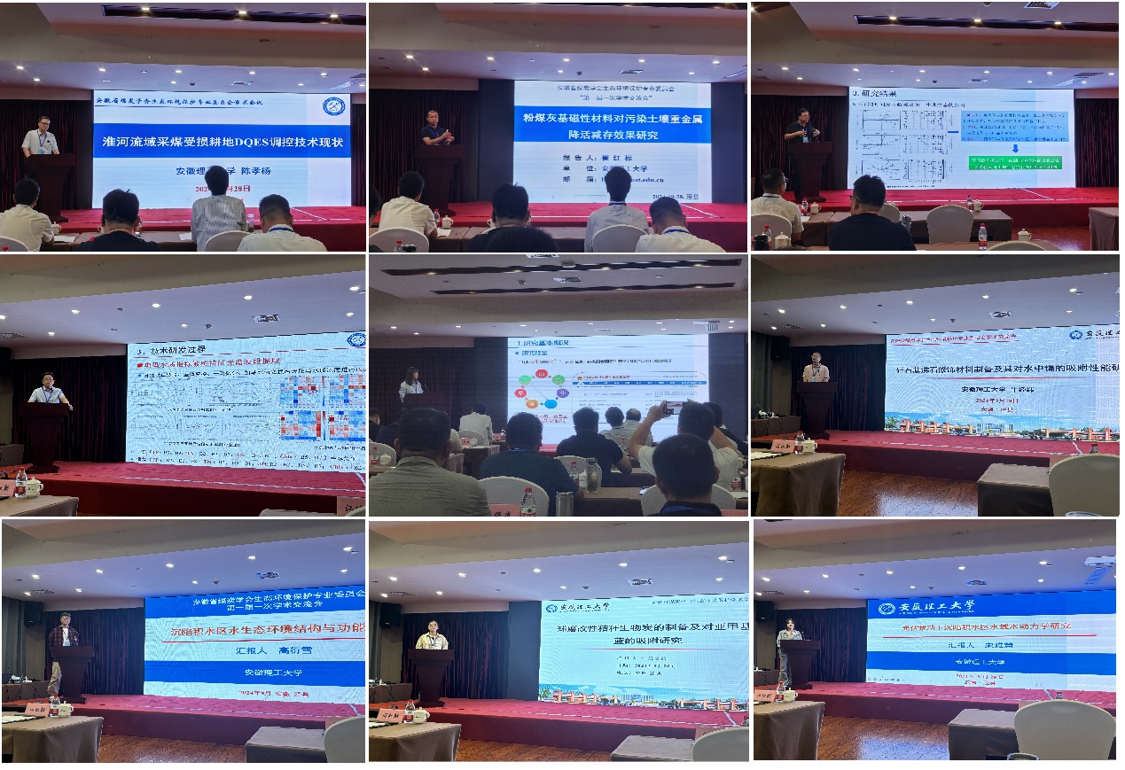 会议宣读了安徽省煤炭学会生态环境保护专业委员会成立文件,学校当选为副主任委员单位。在学术交流环节,学院陈孝杨教授、张世文教授、崔红标教授、王兴明副教授、刘英博士分别作了题为《淮河流域采煤受损耕地DQES调控技术现状》《基于煤基固废的矿区土地功能再造再提升与产品研发》《粉煤灰基磁性材料对污染土壤重金属移除效果研究》《复垦区土壤中蚯蚓提升土壤质量研究》和《水面光伏条件下沉陷水域水质变化快速识别诊断技术》的主题报告。在研究生论坛环节,博士研究生牛经纬、硕士研究生高衍雪、段金铭、宋雅慧分别作了题为《矸石基沸石修饰材料制备及其对水中镉的吸附性能研究》《沉陷积水区水生态环境结构与功能研究》《球磨改性秸秆生物炭的制备及对亚甲基蓝的吸附研究》《光伏扰动下沉陷积水区水域水动力学研究》的学术报告。