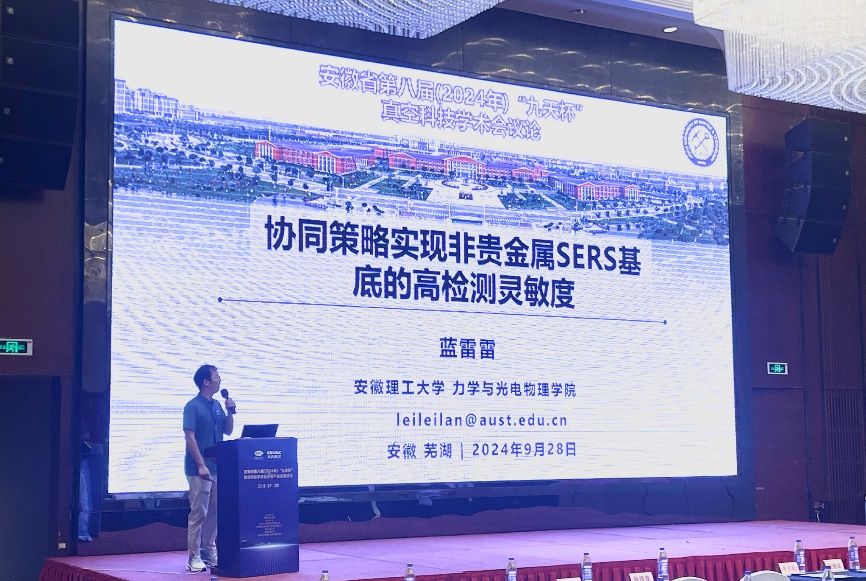 会上,50多名专家学者和青年教师、学生围绕真空科技与技术、表面科学与技术、薄膜科学与技术、等离子体物理与技术、纳米科学与技术、电子材料与器件等方向作了主题学术报告。学院青年教师蓝雷雷博士受邀作了《协同策略实现非贵金属SERS基底的高检测灵敏度》的邀请报告;青年教师童伟博士、硕士生王士暄、肖诚志分别作了《增材制造镍基高温合金微观变形机理研究》、《太阳能自驱动TiO2/Bi2S3异质结检测氯霉素》、《碳化钼表面微观结构构建和析氢催化活性位点调控》的学术报告;肖诚志同学获得了安徽省真空学会2024年“繁枫”优秀论文奖。
