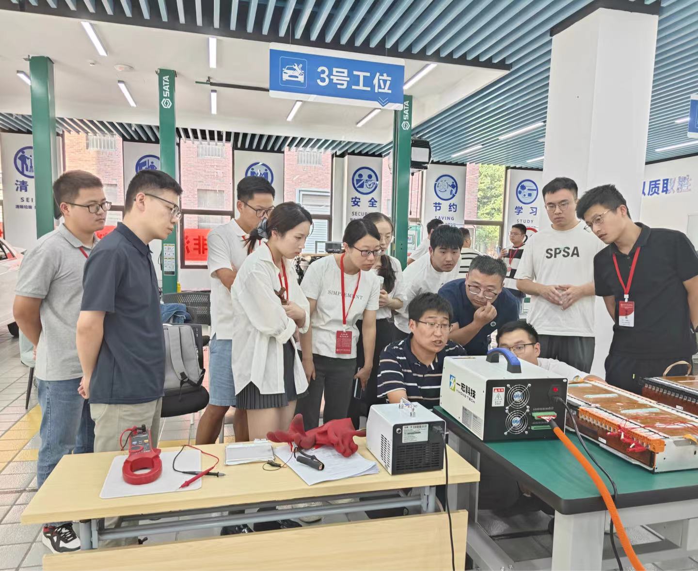 仪式前,学院负责人参观了合肥博仕达汽车技术服务有限公司的新能源汽车组装设备、实习实训场所等;看望了我校承训的安徽省2024年高职院校教师素质提高计划省级配套项目(汽车制造类)“双师型”教师专题研修班进行企业实践的全体学员。
