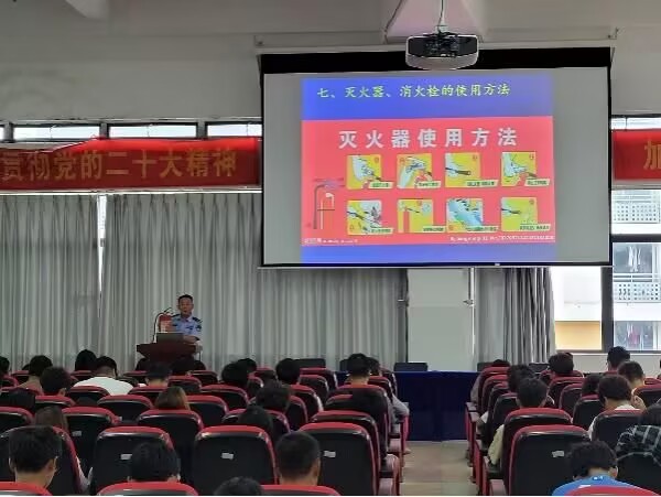 演练活动开始前,保卫处彭广峰老师首先组织同学们观看校园火灾典型案例和地震科普视频。随后,彭广峰以讲座的形式,向学生们详细讲解了火灾和地震的危害性、灾害发生时如何逃生、初期火灾的扑救方法、地震发生时的自我保护措施和逃生技巧等基本常识。此外,以动画视频的方式,向学生们普及了火场受伤人员出现烧伤、烫伤、触电、骨折及大出血等伤情的急救知识,并演示了避险受伤人员出现休克症状的急救方法。